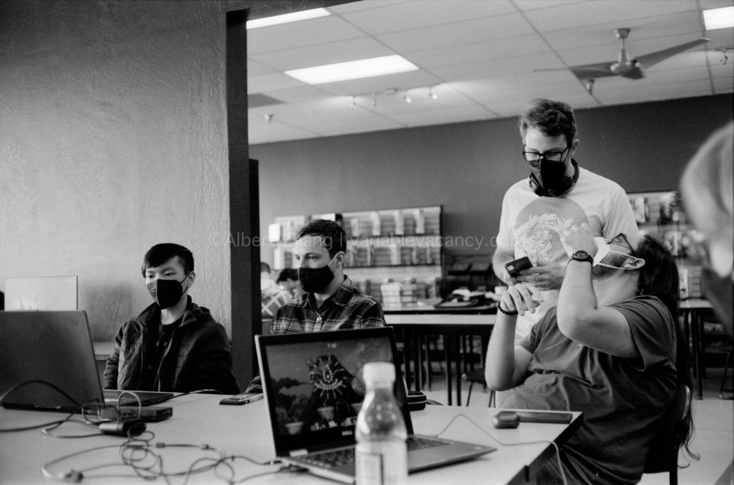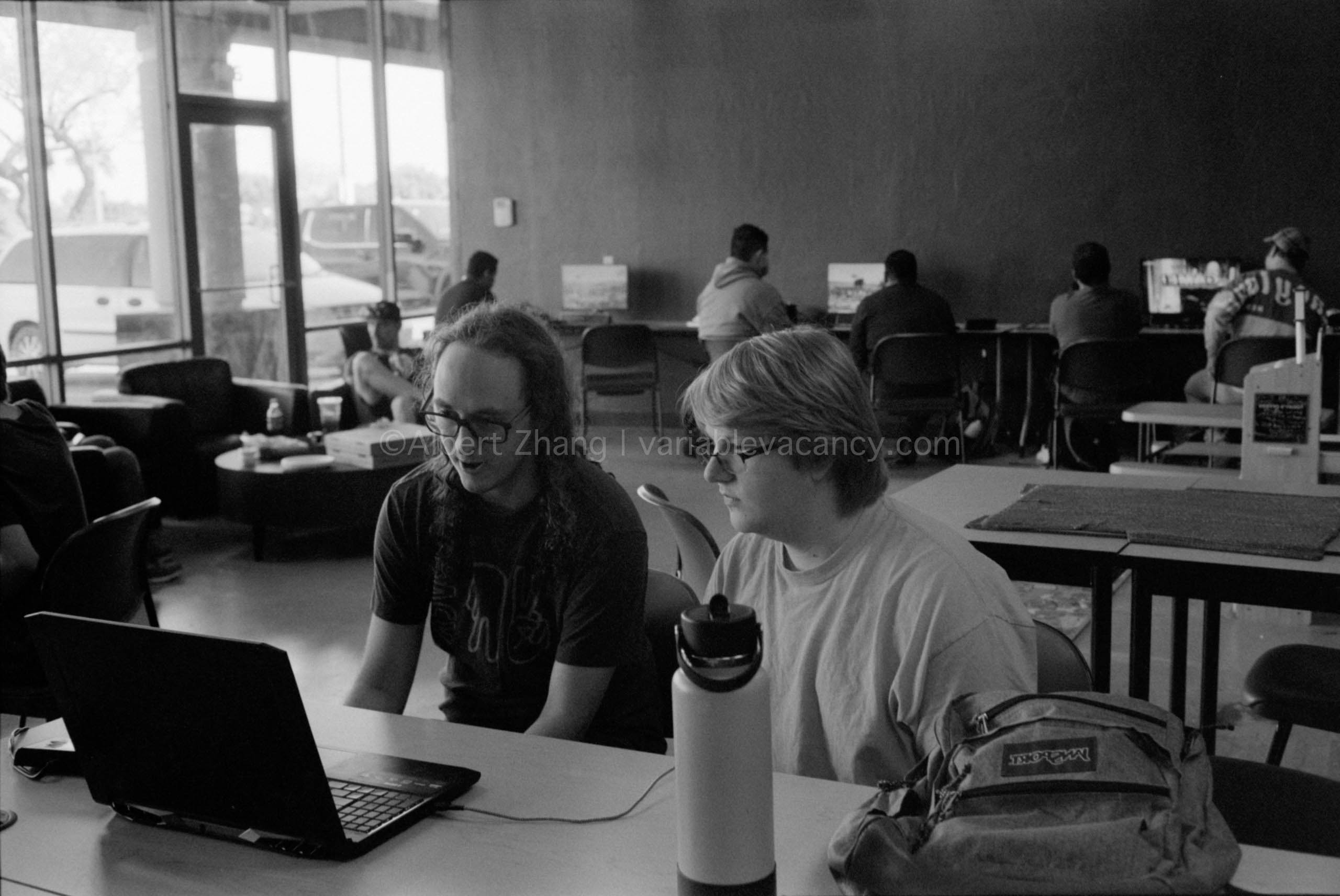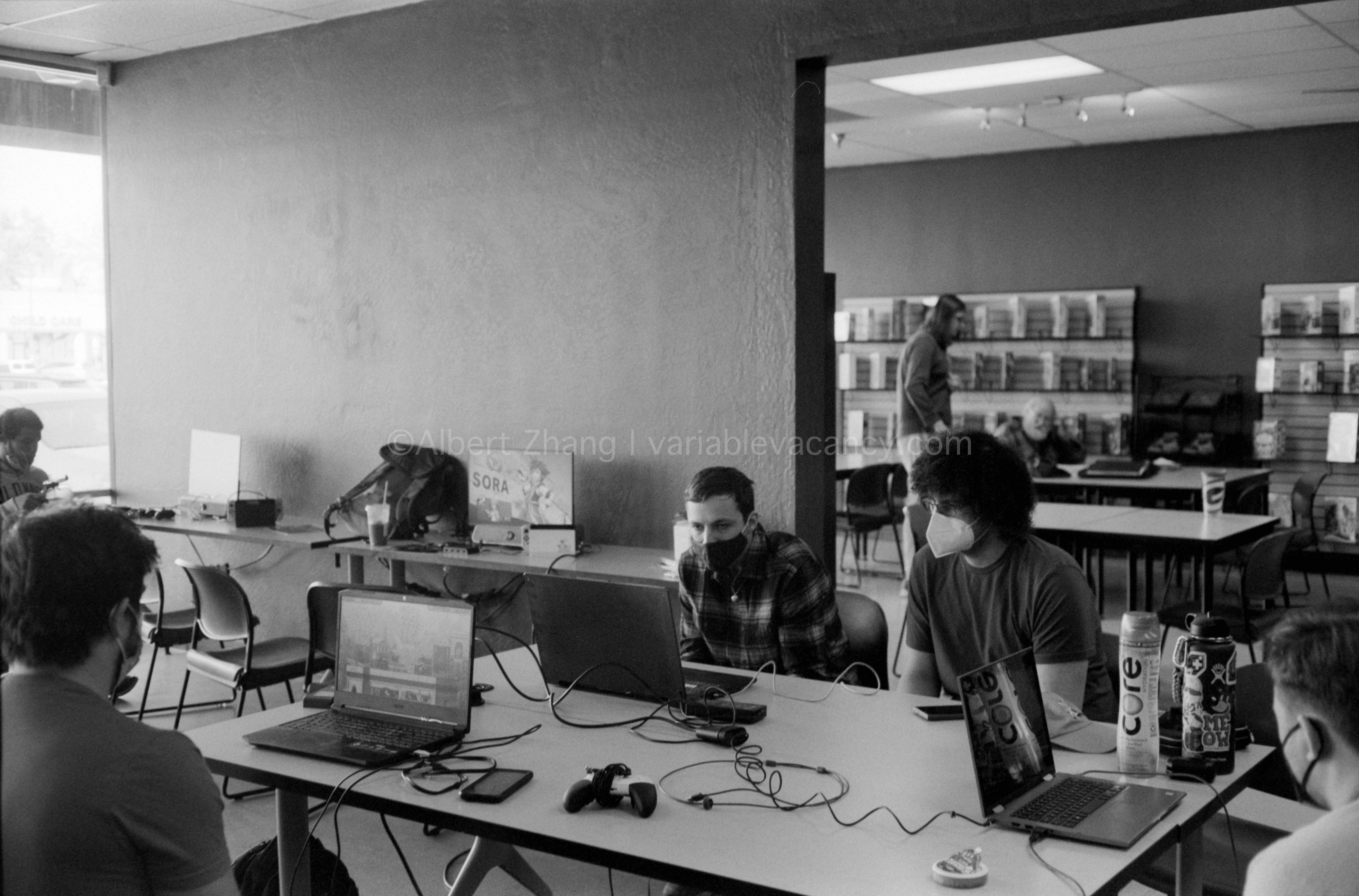 Both of these two rolls of film that are featured in the zine are Ilford HP5, a high contrast, and pretty grainy film. The high contrast makes these photos really stand out from the other black and white photos. There’s also some sort anachronism with taking pictures of people playing video games on black and white film, maybe that says something, I don’t really know.